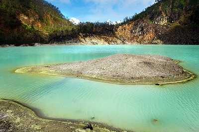 Visitors can also see the crater a change of color. Sometimes the apple green and bluish. When the blazing sun and fine weather, the color changed to brown. Nevertheless, the color white is the dominant color of the water crater. The dominance of the white color is also seen in the color of sand and rocks that are all around the lake.